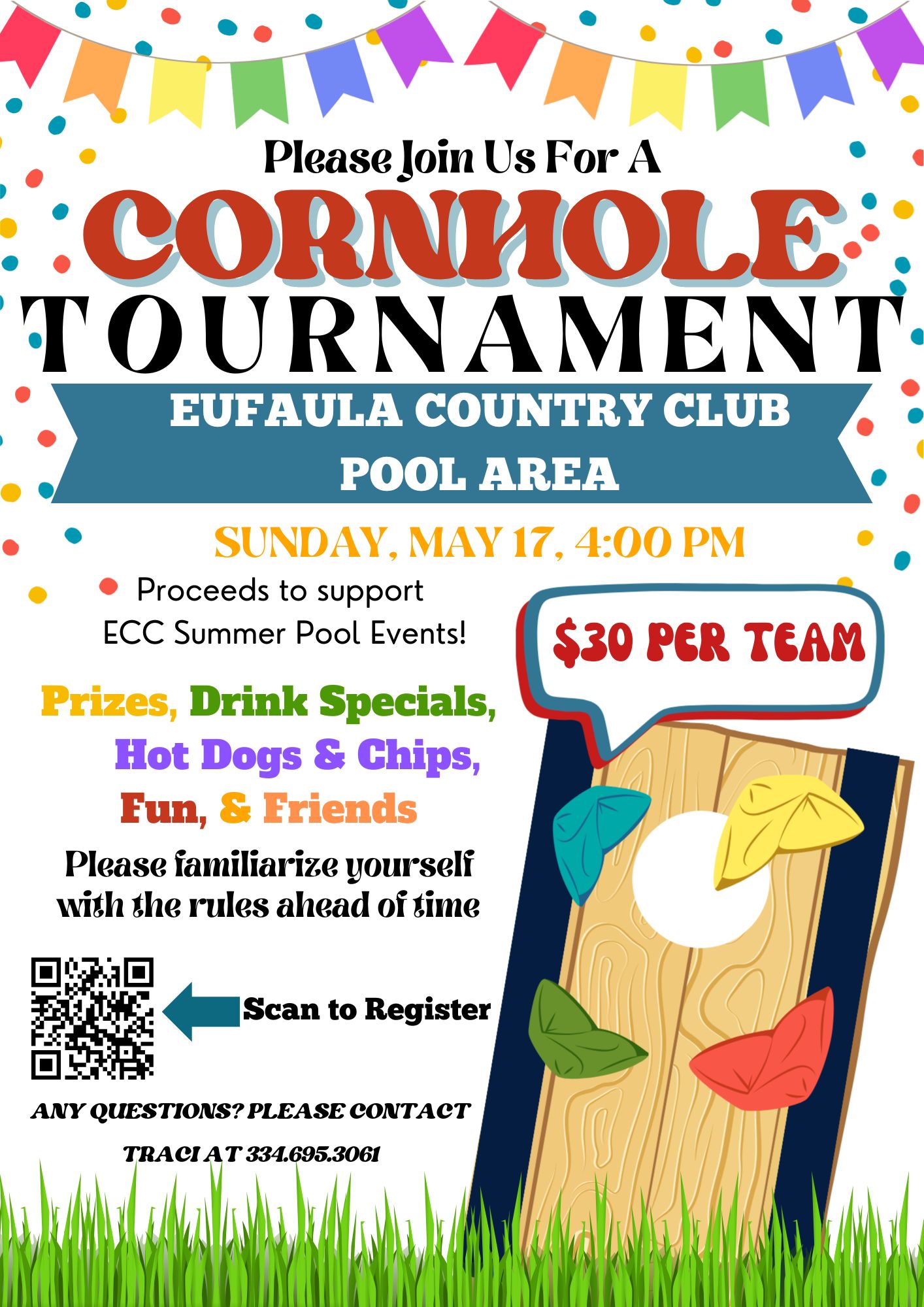 Join us for a fun-filled day of cornhole competition at Eufaula Country Club. Proceeds to support ECC Summer Pool Events.4:00pm