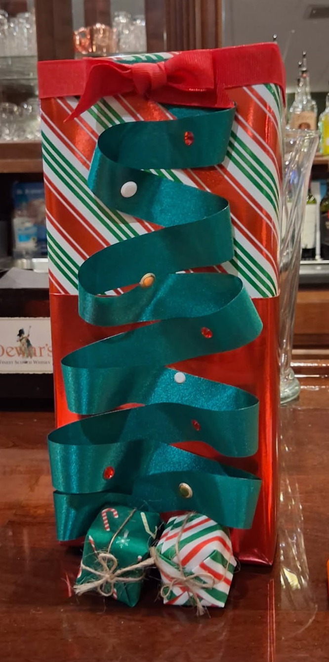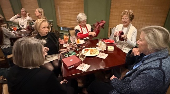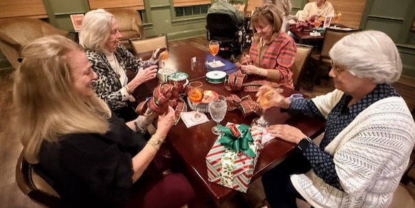 A large group of ladies gathered for the November Ladies Night. We appreciate Anne Schaeffer for sharing with us her talents for bow making and gift wrapping. The group began in the bar and learned how to make beautiful bows. Then, several tables in the ballroom had been prepared for gift wrapping. Numerous beautifully wrapped presents resulted. It was a productive evening which put everyone into the Christmas spirit.
