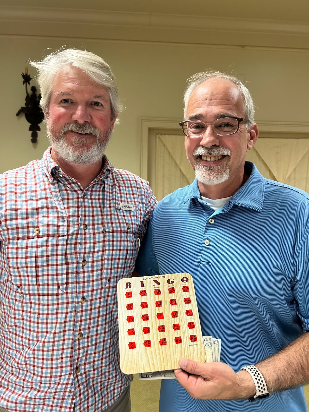 Winners of the $20 prize for the various Bingo games were as follows: Rita Bonner, Lou Martin, Cindy Murray, Janet and Mark Rice, Kim Rosen, Catherine Thomas, Melanie Walker, and Ken White. In one game, Martha Shew and Ken White shared the prize.