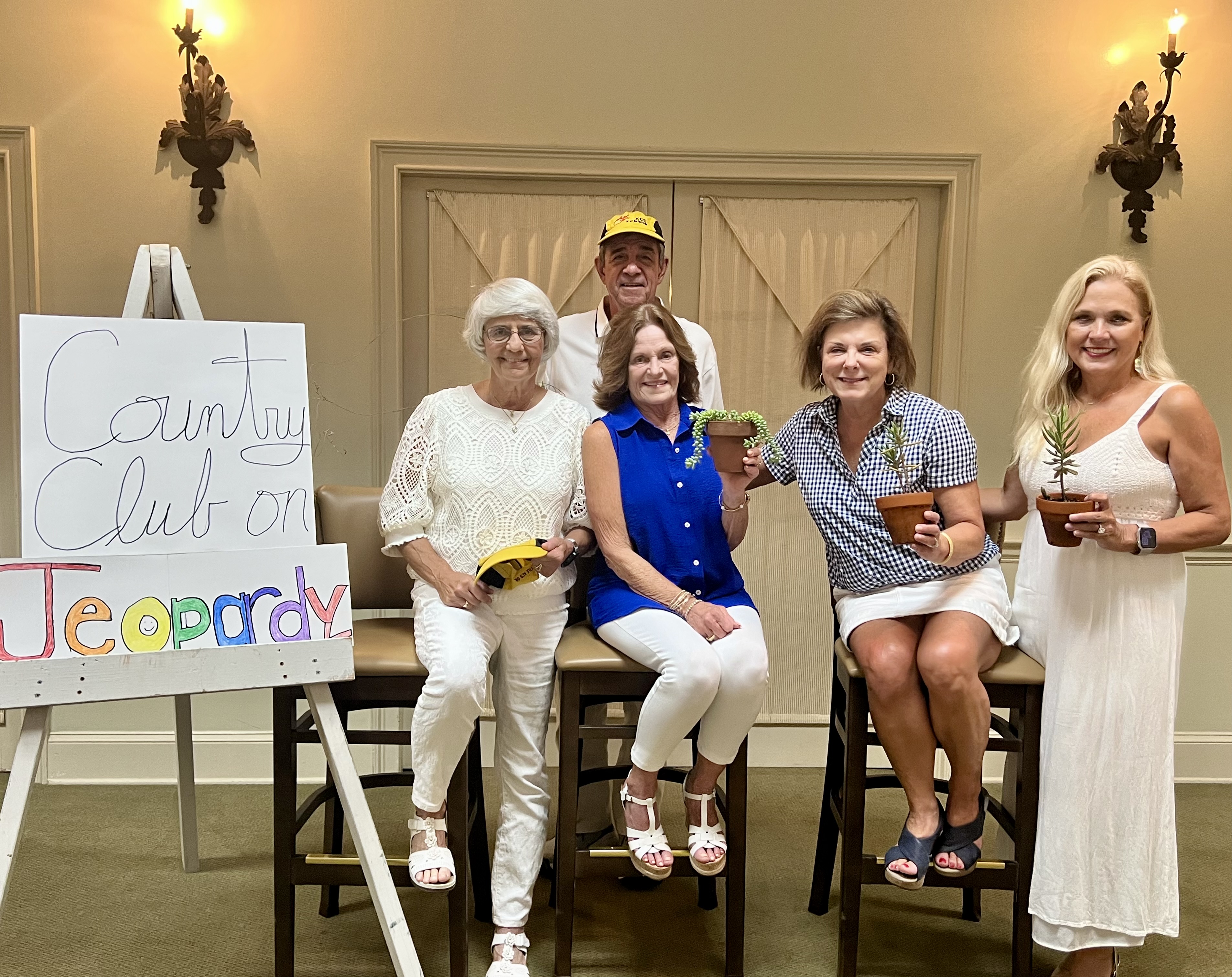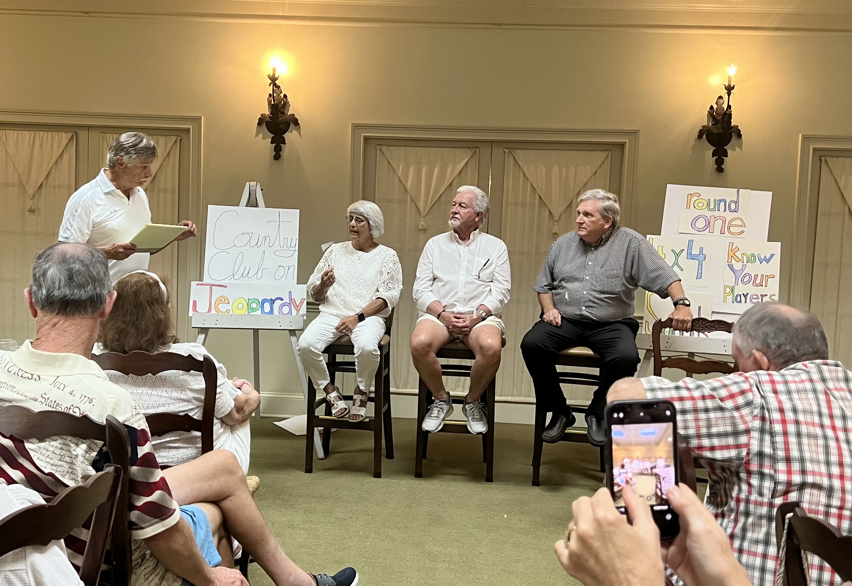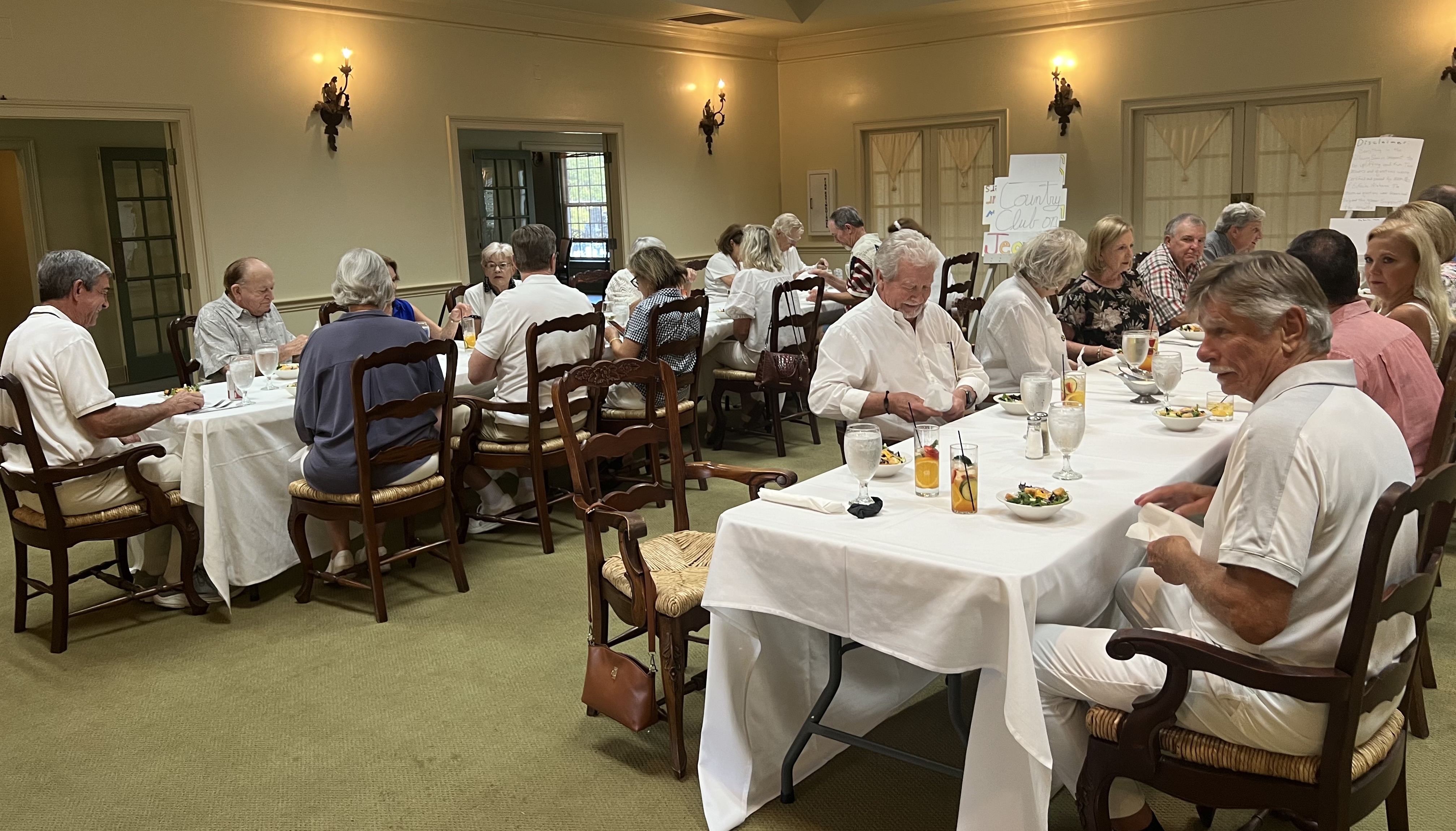 After wining and dining, the group played Country Club on Jeopardy which was facilitated by Mark and William. There were several winners among the contestants as well as some audience participants. Mary Barrows was the winning contestant. Bill Richardson, Susie Hicks, Martha Shew and Rebecca Howes scored the most points among the audience participants.